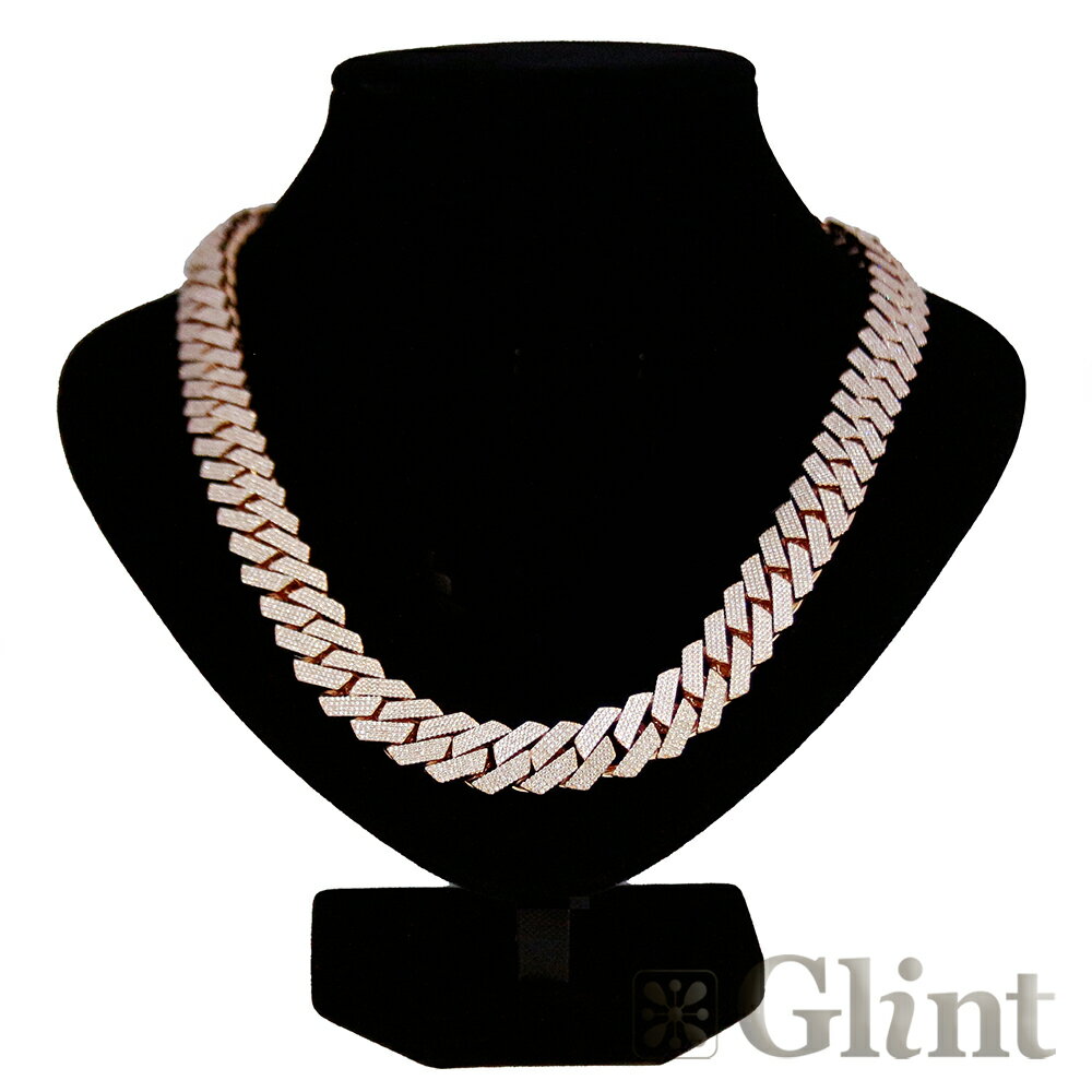 【Glint】グリント マイアミキューバンチェーン ネックレス サイズ55cm/幅15mm 18KPG〔18Kピンクゴールド〕〔パヴェダイヤモンド〕〔マイアミチェーン〕【新品】