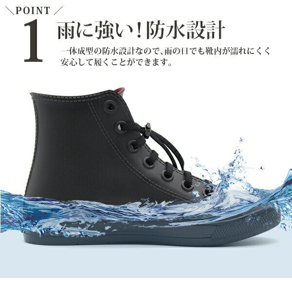 moz レインシューズ キッズ 子供 長靴 ハイカット スニーカー 黒 ブラック 雨 防水 レインブーツ レインスニーカー 男の子 女の子 おしゃれ 靴 モズ moz MZ-7417