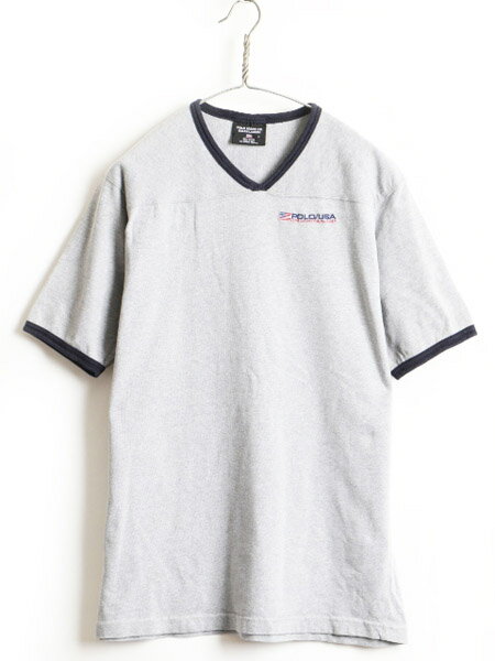 【スーパーSALE 最大半額&P6倍!!】 希少サイズ S ■ POLO JEANS CO ラルフローレン 浅 Vネック 星条旗 ロゴ 刺繍 フットボール タイプ 半袖 Tシャツ ( メンズ ) 古着 灰 ポロ| レディース 【USA古着】 中古 RALPH LAUREN ポロジーンズ 半袖Tシャツ フットボールTシャツ リン
