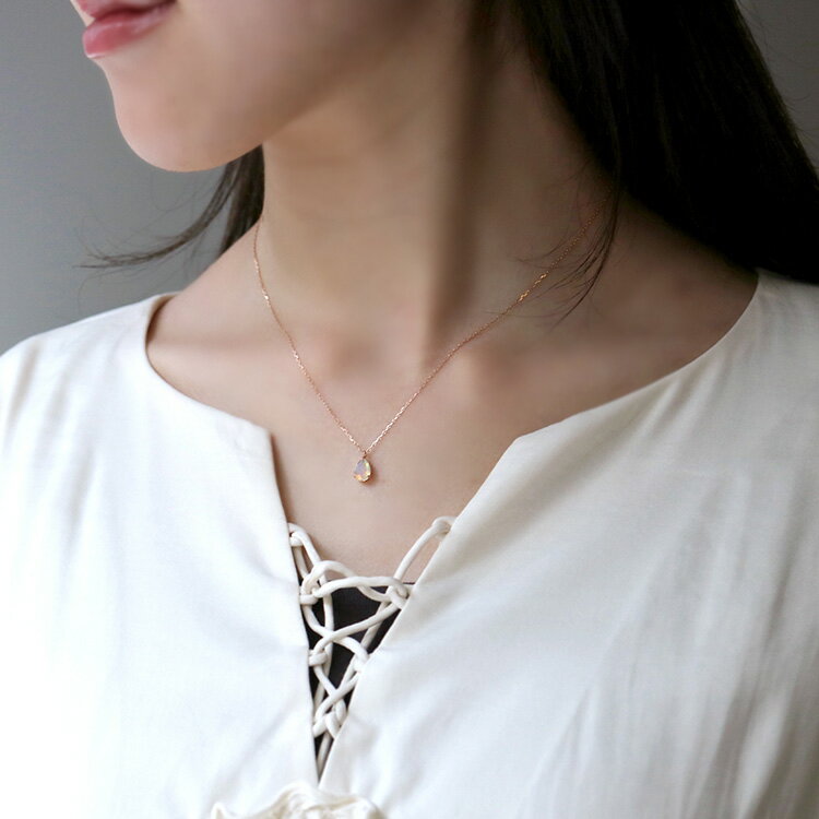 【あす楽対応】オパール エチオピア産 ネックレス レディース ペンダント K10 10K 10金 ピンクゴールド・リュリュアンネ 大粒 しずく 滴 一粒 ドロップ エレガント 誕生日プレゼント 女性 ギフト 人気 おすすめ 10月誕生石 小豆チェーン 華奢 シンプル 宝石 ジュエリー