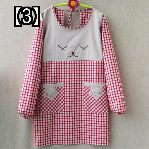 エプロン かわいい レディース キッチン 割烹着 保育士 防水 防油 綿 長袖 シンプル チェック 花柄 赤 白 ———×【1】LCスリーブハッピーツ ———×【2】スリーブスマイリード ———×【3】スリーブスマイリード